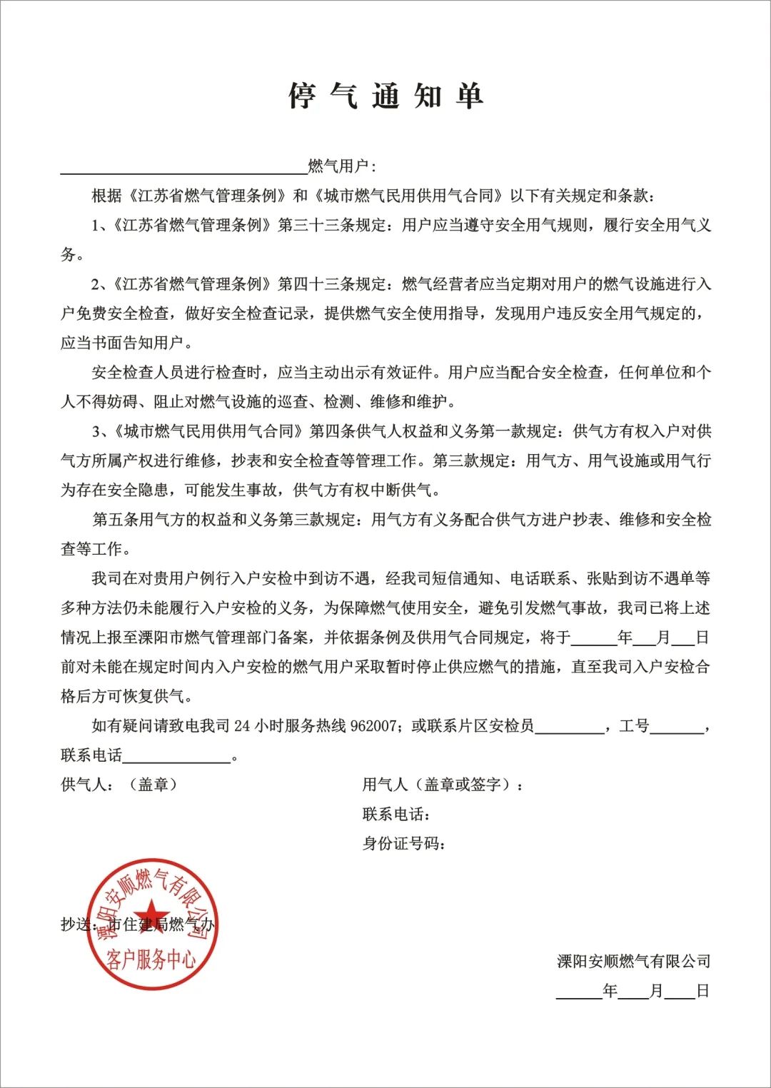 当您在家门口看到了《上门服务到访不遇单》,请及时与通知单上预留的电话联系,也可以联系溧阳安顺燃气24小时服务抢修热线962007,与工作人员约定好上门时间配合入户安检,完成燃气安全检查工作。
