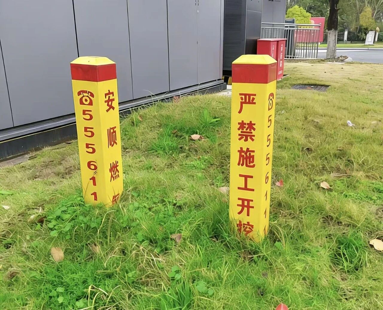 这类标识是地下燃气管网的“路面坐标点”。当燃气管道铺设完成、路面恢复原状后,施工人员会在管线的正上方位置安装这些地面标识,为看不见的地下管道做上永久性标记。